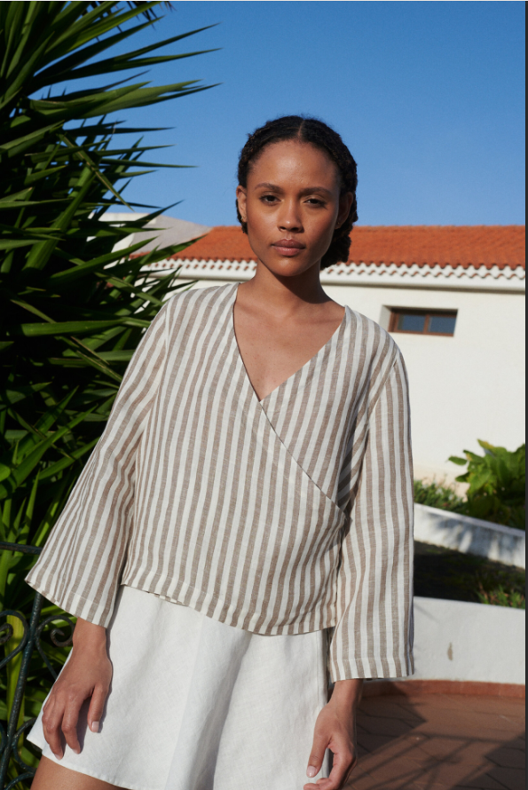 features and Special design:The Georgia Linen Top is a wonderful combination of elegance and casual style. With its striped pattern and V – neck, it brings a touch of refined charm to any outfit.