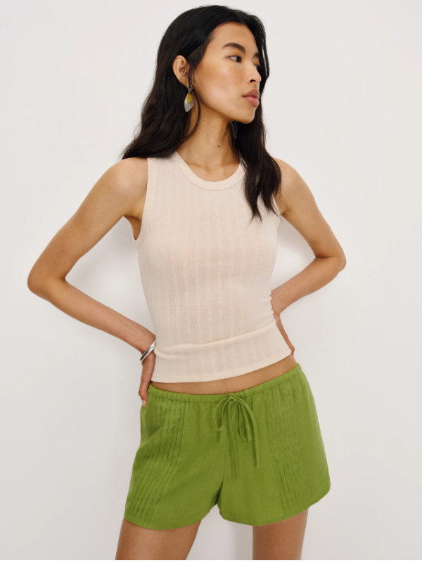 features and Special design:The Hannah Linen Low – Rise Short is a lovely blend of comfort and style. With its drawstring waist and pleated details, it brings a touch of effortless charm to any summer look.