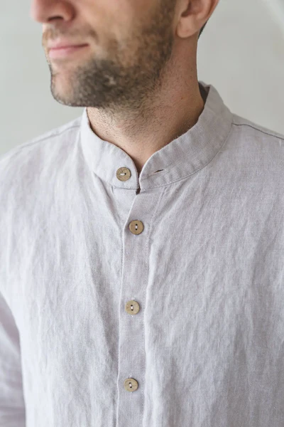 Light Grey Linen Band – Collar Shirt