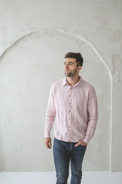 Artistic Romance in Light Pink Linen Shirt Look