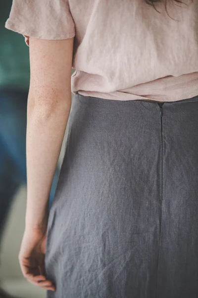 features and Special design:The linen skirt with a front slit from Epic Linen is a beautiful fusion of elegance and ease. Its muted gray hue and flowing silhouette, accentuated by the front slit, bring a touch of refined allure to any outfit.