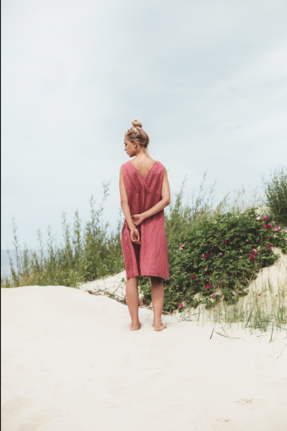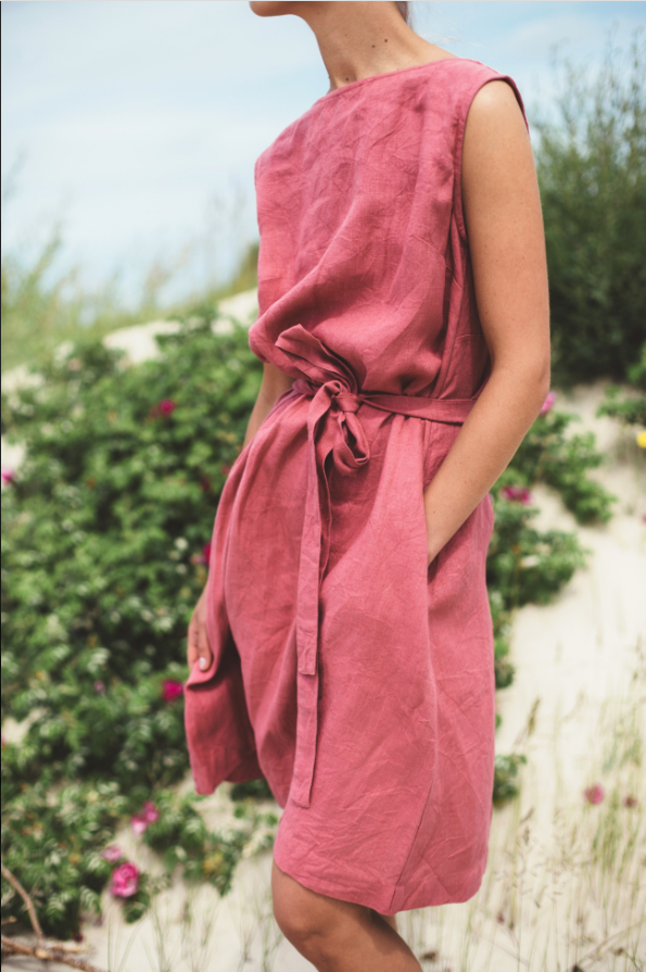 The Nida Sleeveless Linen Dress with Belt is a testament to thoughtful design and timeless appeal. Woven from premium linen, the fabric boasts a soft, airy texture that drapes beautifully, moving gracefully with every step. The sleeveless silhouette is the epitome of warm – weather ease — it showcases the shoulders and arms while allowing for unrestricted movement.A standout detail is the self – tie belt, a slender accessory that transforms the dress from a relaxed shape to a more tailored, feminine form. It can be tied in a neat bow or left to dangle casually, each style adding a unique touch. The belt not only enhances the dress’s shape but also offers versatility, as it can be adjusted to suit different body types and preferences.The boat – neckline is another charming element, framing the collarbone and neck in a delicate, elegant manner. The knee – length skirt skims the legs, balancing casualness with sophistication. In a lovely rose hue, the dress evokes the warmth of summer days, making it a perfect choice for outdoor adventures or leisurely afternoons. Whether you’re strolling through a coastal town, attending a garden party, or simply enjoying a quiet moment in the sun, the Nida Sleeveless Linen Dress with Belt encapsulates a sense of effortless charm, ensuring you feel both comfortable and beautifully put – together.