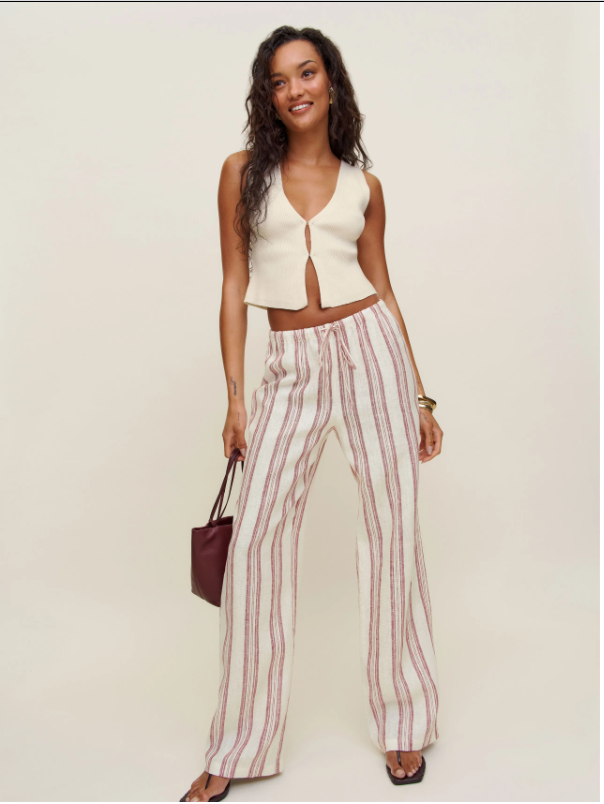 Wide-Leg Silhouette Exudes Elegance, Stripes & Drawstring Add Grace