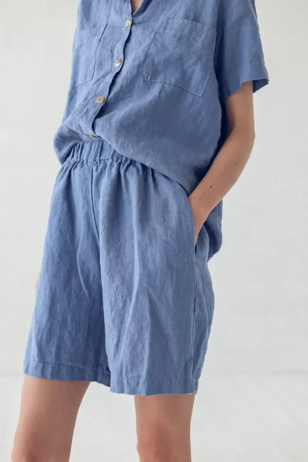 Lazy & Casual Style in Sky Blue Linen Elastic – Waist Shorts