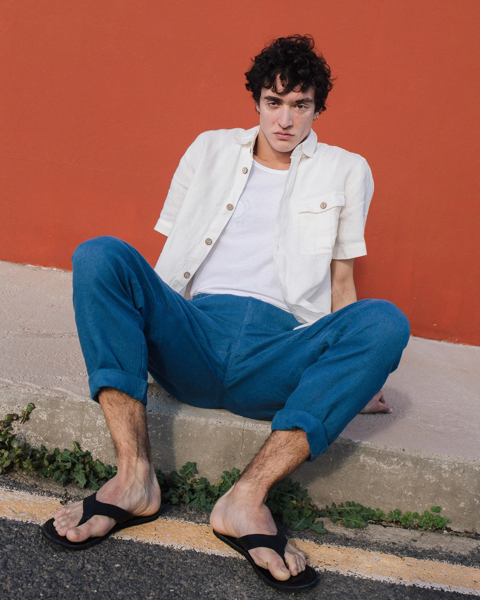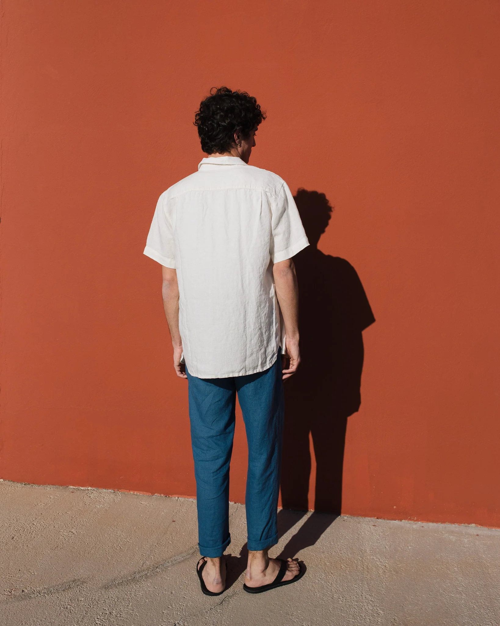 The teal linen trousers are a masterful creation that seamlessly combines casual comfort with understated style. Their relaxed, straight – leg silhouette is designed to offer a sense of ease while still maintaining a flattering shape. The linen fabric, with its inherent breathability and soft handfeel, not only keeps you cool in mild temperatures but also adds a touch of natural elegance. The elasticated waistband is a standout feature, providing adjustability for a perfect fit and a casual, laid – back aesthetic.Small details enhance their allure: the neatly finished hems and the subtle texture of the linen fabric catch the light beautifully, adding depth to the teal hue. This versatile color pairs effortlessly with a wide range of tops, from simple white t – shirts to button – down shirts and light sweaters. For a laid – back weekend look, pair them with a white crew – neck t – shirt, a beige linen shirt worn open, and black flip – flops. To elevate the style for a casual outing, opt for a light blue button – down shirt, a gray baseball cap, and white canvas sneakers.When it comes to layering, these trousers work well too. Pair them with a lightweight jacket or a cardigan on cooler days, and the elasticated waist ensures they still fit comfortably. No matter how you choose to wear them, these trousers’ comfortable fabric, versatile design, and charming details make them an essential addition to any casual wardrobe, capable of transforming simple outfits into effortlessly stylish ensembles.